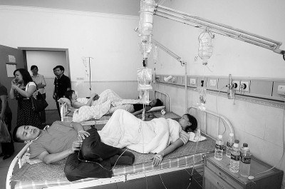 ▲几名中毒群众正在渝北区人民医院的病房内输液(摄于9月3日)。