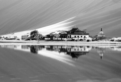 这是巴丹吉林沙漠深处的庙海子和巴丹吉林庙。9月19日,内蒙古自治区阿拉善沙漠国家地质公园揭牌开园仪式在 “中国最美丽的沙漠”——巴丹吉林沙漠举行。