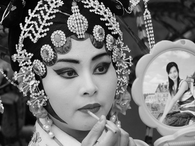 化妆来不得半点马虎简简单单一顿饭精彩的表演吸引了众多村民