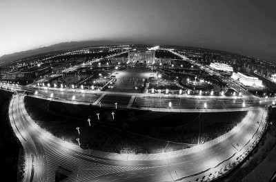银川市新区 “三馆两中心”(宁夏科技馆、图书馆、博物馆、银川文化艺术中心和银川国际会展中心)夜景(9月12日摄)。为迎接宁夏回族自治区成立50周年大庆,银川市对40公里主要街区进行了整体夜景亮化改造。改造分为流光溢彩商业区、安静温馨居住区、民族特色区、现代城市街景等,为凤城银川的夜晚增添了缤纷的色彩。新华社记者王鹏摄