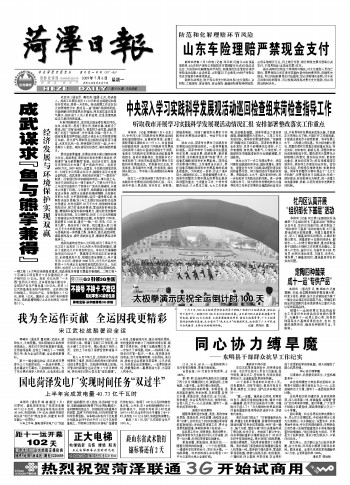 菏泽日报 要闻 A01 2009-07-061 2009年07月06日 星期一