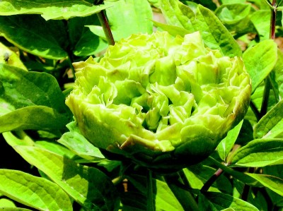 “豆绿 ” 牡丹,顾名思义,其花 开 时颜 色 呈青豆般的绿色。它的花型呈绣球型,有时也呈皇冠型。内瓣长得很密集,皱皱褶褶地交错在一起。花朵初开时是青绿色,随着盛开后,颜色逐渐变淡。“豆绿”花开娇嫩妩媚,清爽宜人,为稀有名贵品种,民间曾流传有 “豆绿值千金”的说法。