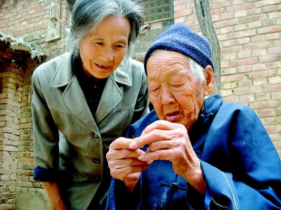 于是,张友汉用电动三轮车带上老娘,向两公里外的刘寨奔去。刘寨与王庄同属刘寨行政村。一个村两位老寿星,并不多见。