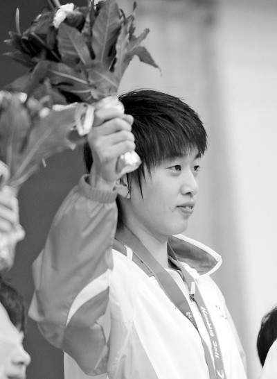 茳10月21日,在江西景德镇陶瓷学院体育馆进行的第七届全国城市运动会跆拳道项目女子62公斤级决赛中,淄博队选手王赟佳战胜合肥选手彭雅琼夺得冠军。图为王赟佳在颁奖仪式上。