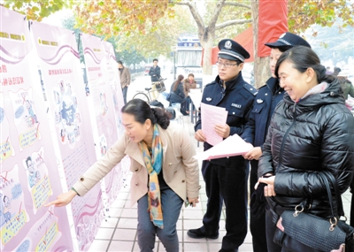 11月25日,市妇联与公、检、法、司等部门,开展主题为“反对家庭暴力,构建和谐家园”的宣传咨询活动,制作宣传展板、向行人发放宣传单,解答群众的咨询。据了解,本次活动旨在预防和制止家庭暴力,进一步增强广大妇女的反家暴意识,保护妇女群众在婚姻家庭中的合法权益,推动和谐家庭、平安家庭创建活动的深入开展。