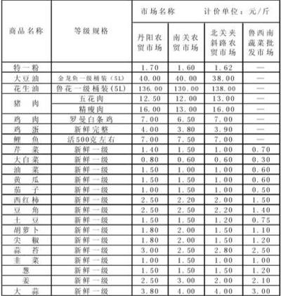 注:本表公布的主要农副产品价格为城区价格监测点价格,因各经销点在品种、规格、质量上或有差异,本价格只反映价格水平,仅供参考。