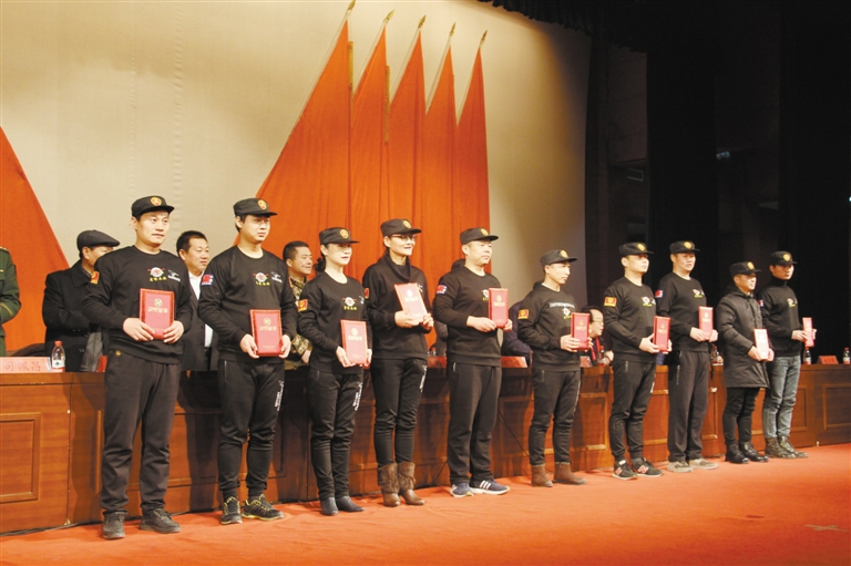 12月24日,牡丹见义勇为冬泳救援队年会召开,现场颁发了优秀运动员奖、冬泳运动积极分子奖、冬泳协会先进工作者奖等奖项。据悉,该队自去年12月正式成立以来,已累计赴救45次、打捞落水人员54人次,打捞落水车辆3次,被群众称为“不穿军装的救援队”。 记者 李亚楠 摄