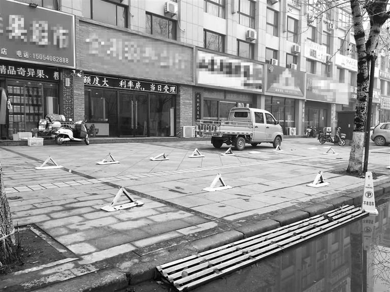 “前几日,我在市区太原路天泽园小区临街的商铺买东西时,就遇到个烦心事,商铺门前的地方都被商家用地锁占了,没有停车的地方。真是不理解这些行为——没有停车的地方,顾客怎么停车消费呢?”陈先生向记者诉说。