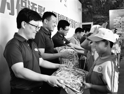 7月4日,在冀鲁豫边区革命纪念馆举行的“为福添彩”·福利彩票关爱留守儿童活动中,来自定陶区孟海镇9所学校的100余名留守儿童每人都获赠一个新书包。当天,他们先后到菏泽学院、曹州牡丹园、冀鲁豫边区革命纪念馆参观,亲身感受大学生活和家乡美景,缅怀革命前辈的英雄事迹。据介绍,此次活动目的是帮助农村留守儿童圆梦,也希望全社会共同关注留守儿童群体,为他们的健康成长营造良好的氛围。