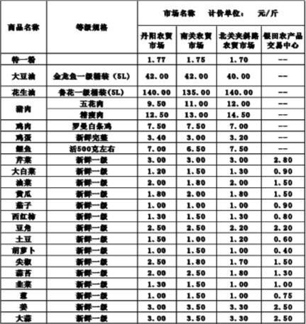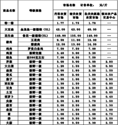 菏泽城区农贸市场主要农副产品价格