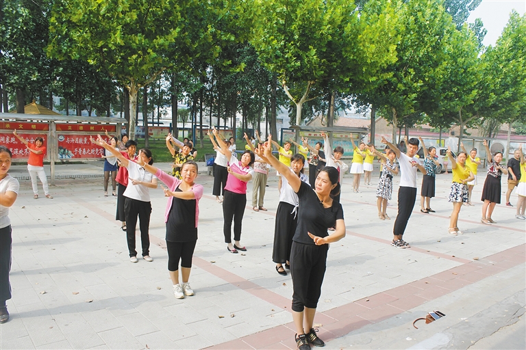 8月2日,定陶区冉堌镇百位文艺骨干认真学习“戏曲操”。她们跟随着音乐的节拍,扭动着自己的身体,努力跟上区文化馆老师的动作,舞出自己的精神面貌。据了解,这套体操是根据国家推行的戏曲广播体操改编的,立足于本土戏曲文化,训练以零为起点,不受年龄、性别、民族、文化程度的限制,只要喜爱即可参与的形式,不仅可以强身健体,还能更好地传承优秀传统文化,焕发新的魅力,掀起全民健身热潮。