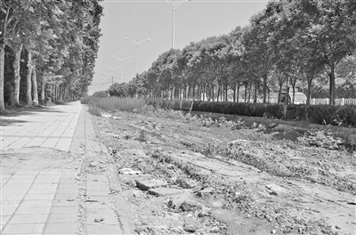 “现在这个路段杂草蛮长,各种垃圾都扔在这里。一到下雨天,垃圾自北向南都漂浮过来了。前段时间听说是路面改造,但是一直到现在也没人管。”岳先生说。