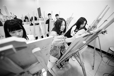 11月13日,在湖南省长沙市现代商贸中等职业学校,学前教育专业的学生在练习素描。