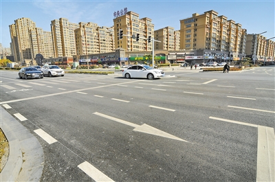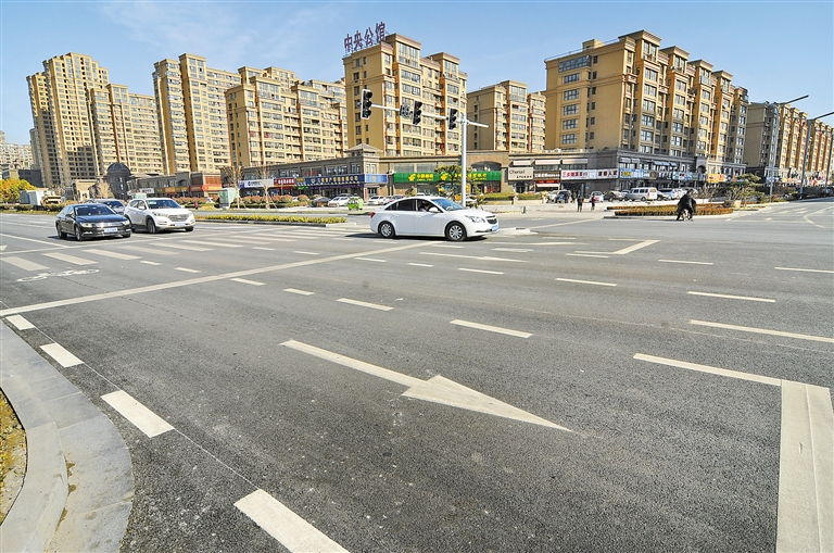 11月23日,记者在人民路八一路口发现,路面已画了左转待转区和直行待行区,如车辆充分利用这些区域,一个红绿灯周期内,该路口能够至少多通过10余辆车。记者从菏泽车管部门获悉,为了提高市区道路的通行能力,市区中华路人民路口、人民路八一路口、人民路长城路口、人民路丹阳路口、广州路黄河路口、广州路长江路口(具体情况以实际施工为准)都会施划车辆等待区,可有效缓解交通压力。记者 邓兴宇 摄