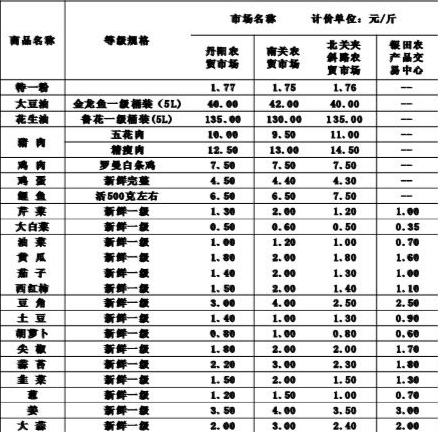 注:本表公布的主要农副产品价格为城区价格监测点价格,因各经销点在品种、规格、质量上或有差异,本价格只反映价格水平,仅供参考。