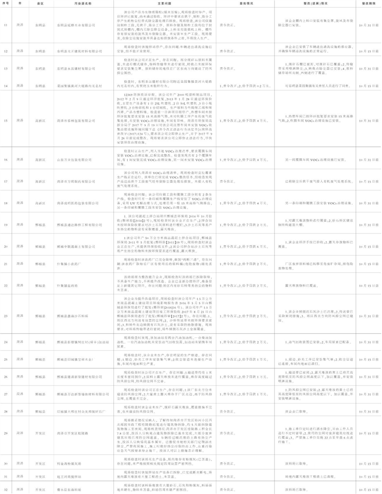 菏泽市突出问题督办 企业查处整改情况(第6期)