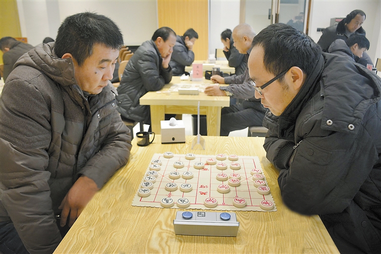 1月28日,菏泽市梦之蓝杯象棋精英赛暨2018将帅棋院谁是棋王系列赛第四轮开赛, 全市各县区百余人参赛,选手们通过比赛相互交流、切磋棋艺,极大地推动了我市象棋活动的发展。此活动由市体育局主办,市将帅象棋俱乐部承办。 记者 刘辉 摄
