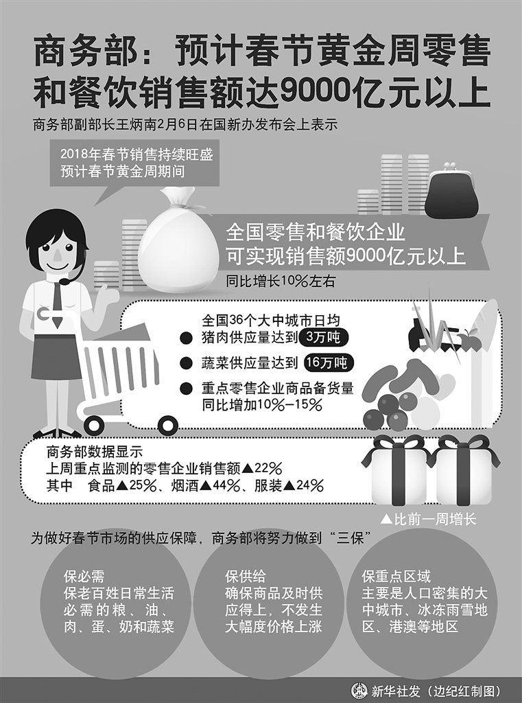 商务部:预计春节黄金周零售和餐饮销售额达9000亿元以上