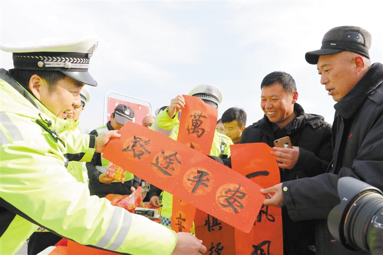 同时,高速交警还在服务区内进行了交通安全常识宣传,向广大群众及司乘人员集中宣传客车超员、超速行驶、酒后驾驶、涉牌涉证等重点交通违法的危害,营造春运期间“安全、畅通”的高速交通环境。