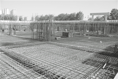 “你看这一个钢筋结构,就不是一般建筑所使用的,环环扣扣,十分复杂,这样才能保证工程质量。”谢忠印介绍说,“东侧即将要构架一个钢梁,这个钢梁就有40多吨,由此可见这个工程的复杂程度。”