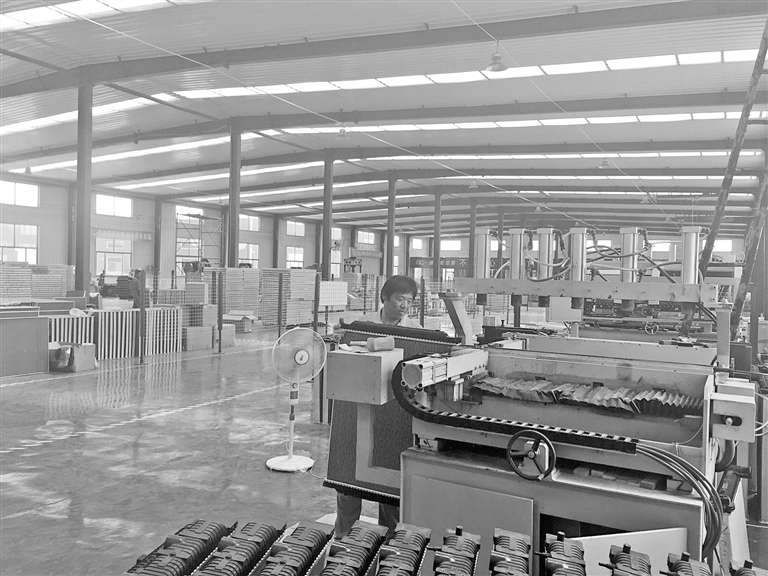 7月5日,在牡丹区王浩屯镇山东达骋实业有限公司车间内,工人正在生产汽车散热器。据悉,该车间由王浩屯镇东前刘村人返乡创业投资建设,主营汽车散热器及压铸件、汽车配件、增压中冷器、油冷却器等的制造、销售,一期8000平方米厂房已建设完成并投产使用,带动了周边村庄100余人上岗就业,解决了农村劳动力特别是贫困群众的就业问题,年实现利税600万元。 记者 李若生 摄