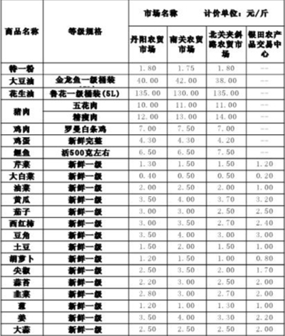 注:本表公布的主要农副产品价格为城区价格监测点价格,因各经销点在品种、规格、质量上或有差异,本价格只反映价格水平,仅供参考。
