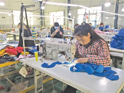 1月14日,牡丹区吴店镇赵子艾村扶贫车间内,一台台服装加工设备正在紧张忙碌地工作着,已经脱贫的刘桂香正在加工服饰。吴店镇利用“企业+车间+贫困户”模式,把扶贫车间建到村里,送就业岗位到贫困群众家门口,让他们足不出户务工增收,进一步巩固了脱贫成果。 记者 李若生 摄