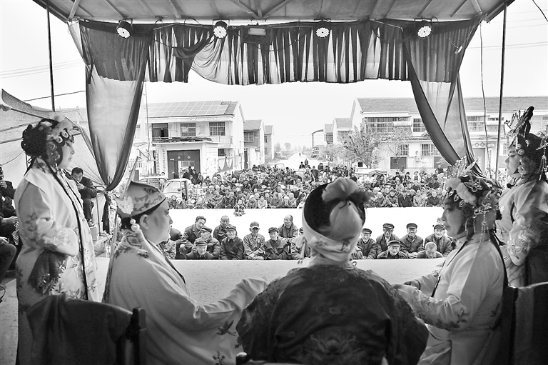 今年57岁的申明亮是郓城县黄安镇郭垓行政村人,大弦子戏非遗传承人。他自幼跟随父辈学习大弦子戏,至今已有40余年。为了让这个古老的濒危剧种重新焕发生机,2018年初,申明亮与郓城、曹县两地县区的多个社办老剧团的30余名专业戏曲演员和乐队人员,合班筹建了郓城县明亮大弦子戏剧团传承中心。据了解,该剧团演员先后自筹经费7万余元,于同年5月7日正式排演后“一炮而红”。截至目前,已先后演出30余场次,恢复传统曲目20余台,现已是菏泽市最具规模的大弦子戏剧团之一。