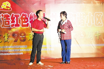 6月30日,牡丹区东城街道办事处东和社区联合金都华府小区举办“打造红色物业 共建和谐小区”社区文化联欢会,为中国共产党成立98周年献礼。活动现场,社区党员、业主欢聚一堂,独唱、合唱、民族舞、广场舞等节目精彩纷呈。 记者 常鲁燕 摄