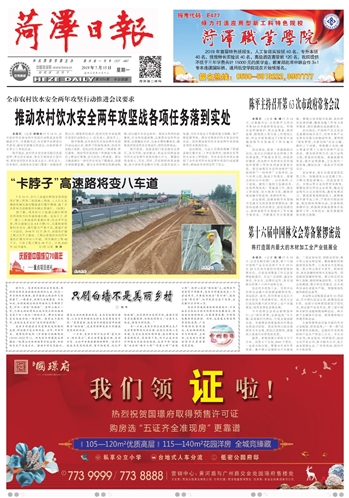 2019年7月15日 星期一 农历己亥年六月十三 第8554期 今日四版