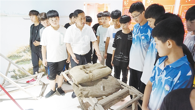 据悉,大潭初级中学所在地是郓城县第一个党支部的诞生地,是一所红色学校。作为红色革命精神教育基地,该校建起了党史展览馆,所有教学楼、班级等均以老党员名字命名,以红色歌曲作为班歌,并开设了红色教育课程。开学第一天,就组织学生参观党史展览馆,接受爱国主义教育,在孩子心田种下一颗“红色种子”,让红色精神薪火相传。