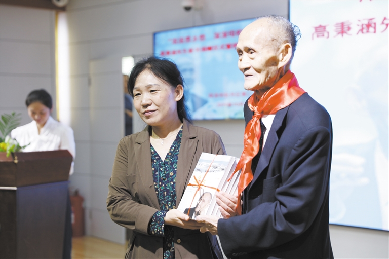 10月11日,牡丹区第二小学校长付秀云(左)接受高秉涵先生捐赠图书。当日,来自台湾的老校友高秉涵先生回到家乡后,专程来到母校牡丹区第二小学,捐赠自己刚刚发行的图书《乡愁》。近年来,高秉涵先生每次回乡都要回母校看看,或是捐赠书籍、乐器、奖杯,或是作讲座……浓浓的家国情怀、母校情结激励着同学们好好学习,奋发向上。
