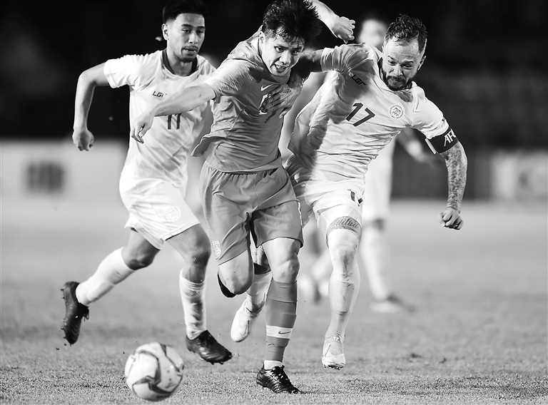 当日,在菲律宾巴科洛德举行的2022年卡塔尔世界杯预选赛亚洲区40强赛中,中国队客场以0比0战平菲律宾队。新华社记者 杜宇 摄