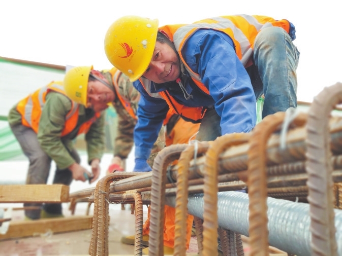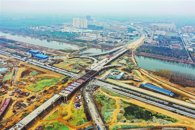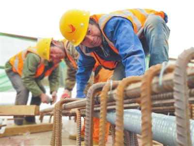 11月26日,记者在人民南路互通立交南北主道桥施工现场看到,主道桥西幅已显全貌,施工人员正在进行预应力金属波纹管安装,为最后一联的浇筑做准备。在确保工程质量的前提下,施工人员进行连续作业,力争年底前主线桥西幅完成双向通车。据了解,随着万福新城规划建设,人民路与南外环互通立交将成为一个漂亮的地标。 记者 李保珠 摄