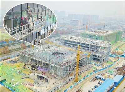 12月13日,工人们正在进行鲁西南大数据科技馆外幕墙玻璃安装作业。据了解,鲁西南大数据中心一期项目于2018年5月9日正式开工,目前,综合楼内墙抹灰基本完成;大数据科技馆主体封顶;大数据机房正负零以下完成,正在进行一层主体结构施工。根据项目计划,本月底大数据科技馆幕墙基本完成、一层精装修布展完成;2020年3月底项目一期整体交工。