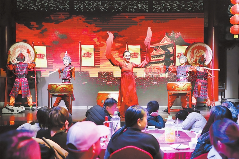 千里万福河,一座青禾源。日前,“繁华聚首 共襄盛宴”青禾源2019业主答谢会举行,现场美酒飘香、歌声四溢,广大业主欢聚一堂,共同展望在青禾源的美好生活。活动现场,青禾源营销部、工程部负责人详细介绍了青禾源项目的稀缺性及最新的工程进展,同时也带来了最新的项目建设规划。图为震撼人心、鼓舞士气的《鼓上舞》表演。记者 李亚楠 摄