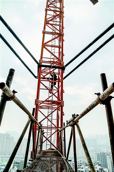 “现在好多了,夏有空调、冬有电暖,工地上的安全规范检查也很到位,整个工作环境有了很大改善。”郭良说,他们班在这块工地的工作即将进入尾声,马上要去另一处工地继续工作。塔吊工作肩负着整个工程的材料输送,责任重大也让他倍感自豪,他笑言他们这群“90后”“00后”是“最接近天空的年轻人”。
