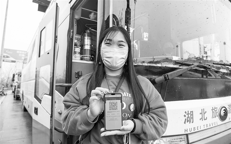 随着近日武汉部分企业逐渐复产复工,进入武汉的返城务工人员陆续增多,车辆在武汉西高速收费站交通卡点有序排队返回武汉。工作人员对返城人员检查体温,并核查证明健康的“绿码”和身份证后放行。